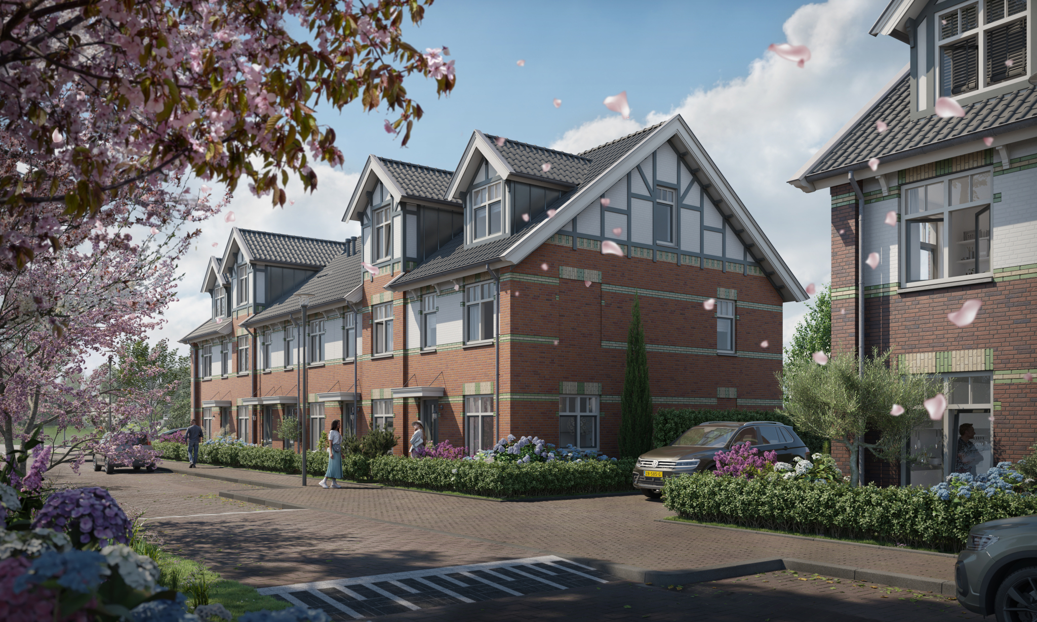 Met ‘De Meesters’ leggen we het laatste puzzelstukje van Vroondaal. Zowel stedenbouwkundig als architectonisch maken we dit stijlvolle woongebied compleet. De woningen sluiten qua oriëntatie, vorm en stijl aan op de omliggende deelgebieden en de wijk als geheel, maar hebben tegelijkertijd hun eigen unieke karakter. Kenmerkend is hun chique architectuur met verfijnde details en rijke ornamenten. Samen met de harmonieuze variatie in kleuren en materialen zorgt dit voor een dynamisch gevelbeeld.